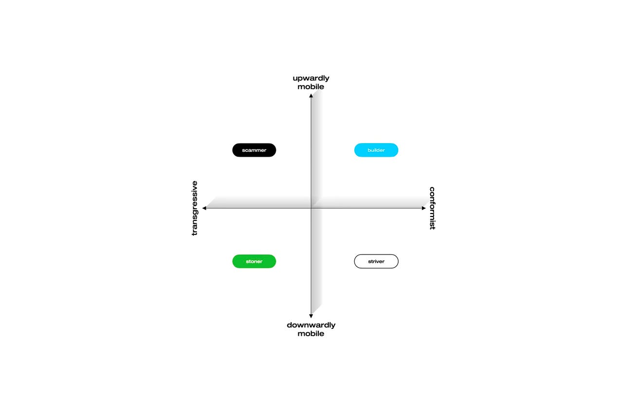 strivers, stoners, scammers, and builders