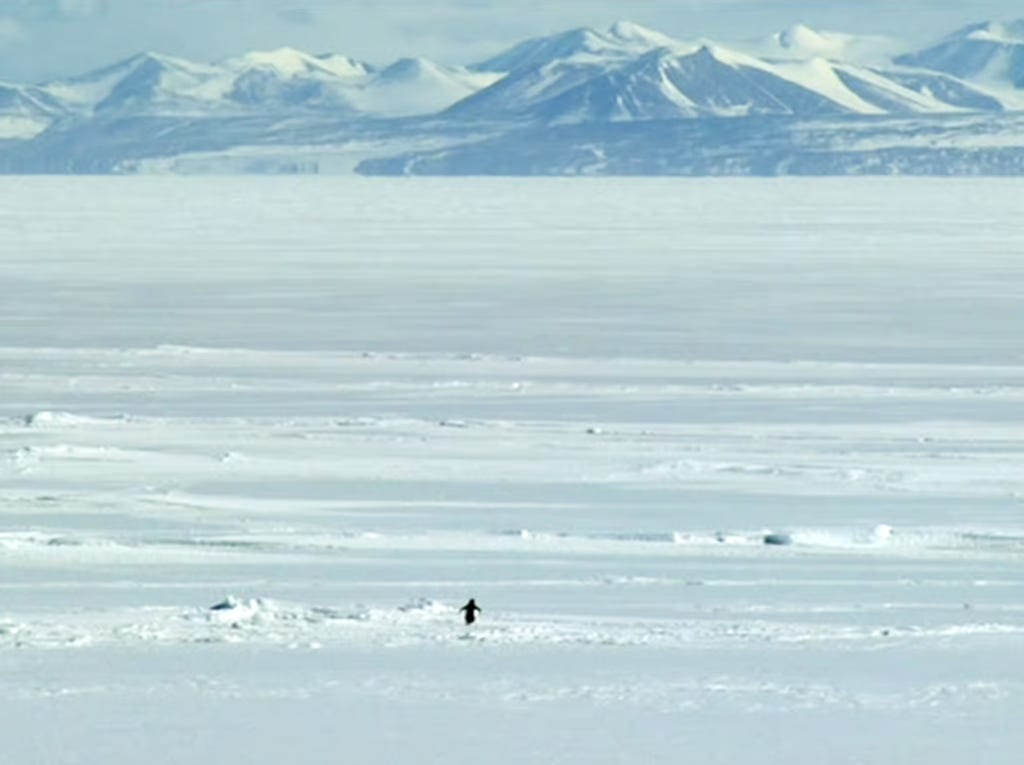 The year kicked off with a clip from Werner Herzog's 2007 documentary, Encounters at the End of the World. Visiting David Ainley, an Antarctic penguin scientist, the filmmaker observes a dissenter. Over a crashing organ rendition of Gigi D’Agostino’s "L'Amour Toujours", Herzog narrates: